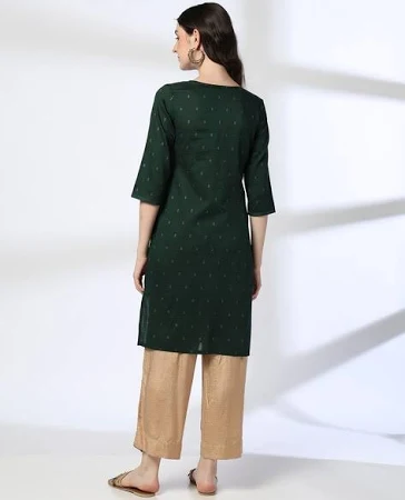 Women Printed Straight Kurta with Embroidered Yoke For Women (Green, XS)