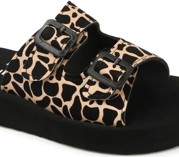 Denill Women's Printed Velvet Open Toe Flats with Buckles