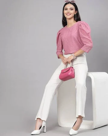 Style Quotient Women's Self Design Floral Lace Regular Smart Casual Top