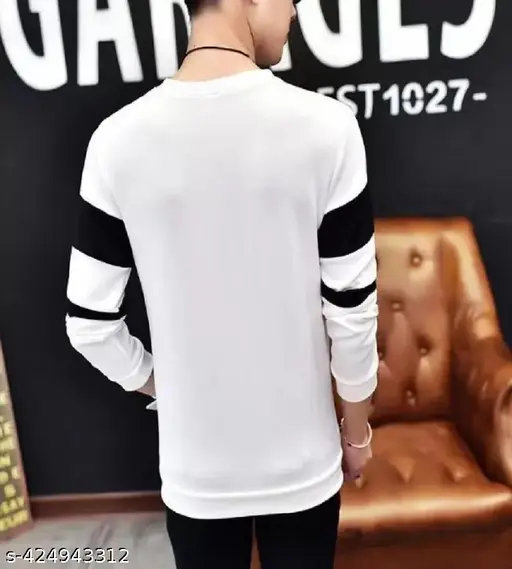 White Color Full Sleeves Round Neck T-Shirts For Men's