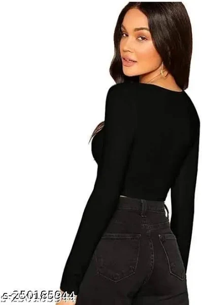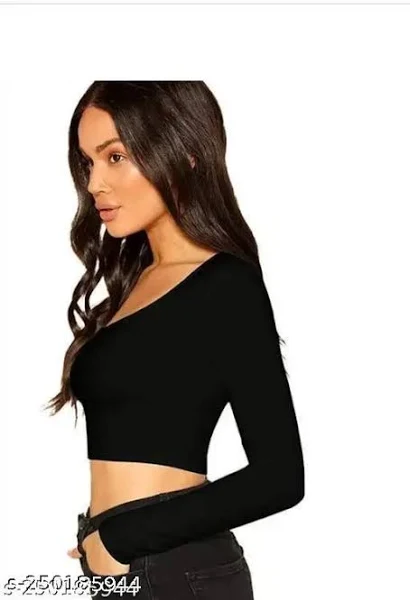 Women's Slim Fit Crop Long Sleeve Scoop Neck Solid Color T-Shirt