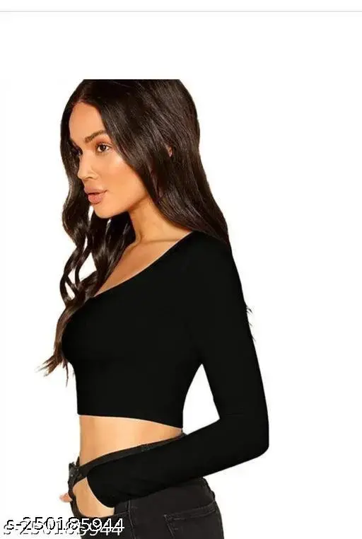 Women's Slim Fit Crop Tops Long Sleeve Scoop Neck Solid Color T-Shirts Blouses with trendy look