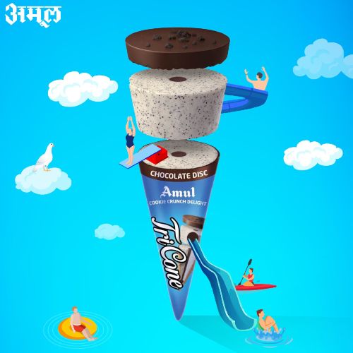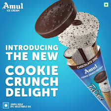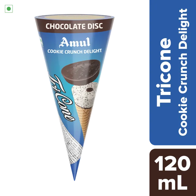 Indulge in the ultimate sensory delight with Amul's Tricone Cookie Crunch Delight. Crafted with the finest natural ingredients, this ice cream treat offers a captivating balance of smooth, creamy ice cream and the perfect crunch of cookie and chocolate. Sink your teeth into the crispy wafer biscuit cone, which encases a fantastic cookie cream ice cream that simply melts in your mouth, leaving a smooth and satisfying aftertaste.