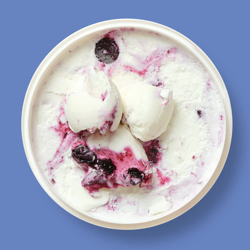 The savory, tangy flavor of goat cheese pairs well with sweet and plump blueberries in a creamy ice cream.. for the discerning few.