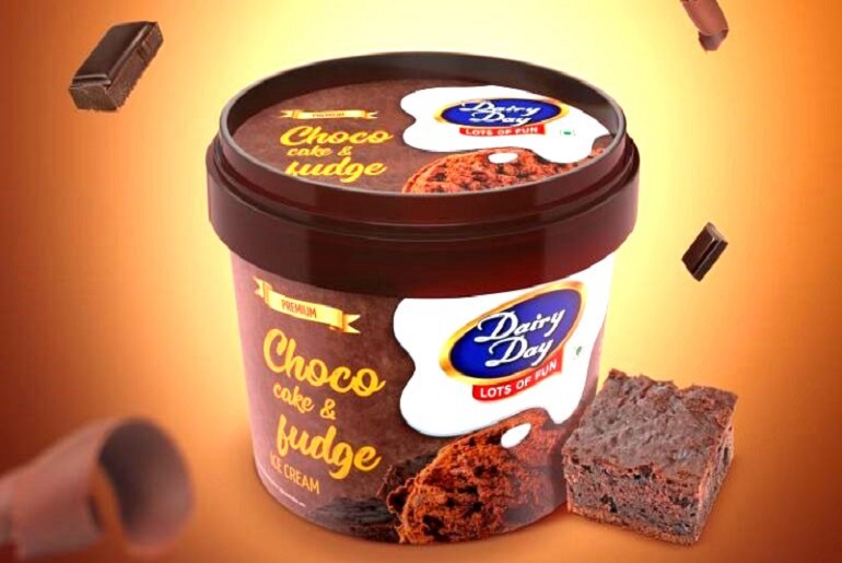 Dairy Day Tub Choco Cake and fudge Ice Cream is a mix of delectable chocolate fudge and ice cream. It is a perfect blend of fudge ribbon and sprinkled with brownie pieces. Delectable chocolate fudge ice cream, married to a fudge confectionery and sprinkled with brownie pieces. It does not contain any added sugar, artificial sweetener or colour.