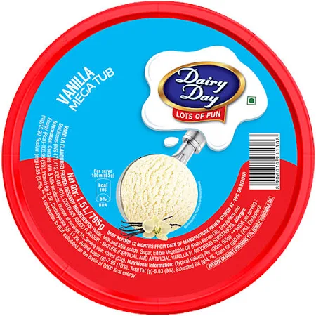 Dairy Day Vanilla Ice Cream is a delicious and creamy ice cream made with high-quality ingredients. It has a rich, smooth texture and a delightful vanilla flavour that will satisfy your sweet cravings. Enjoy this ice cream on its own or pair it with your favourite toppings for a delightful treat.