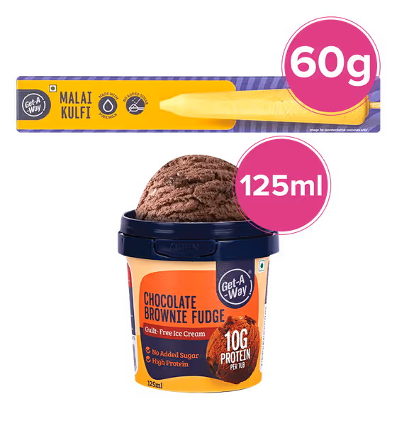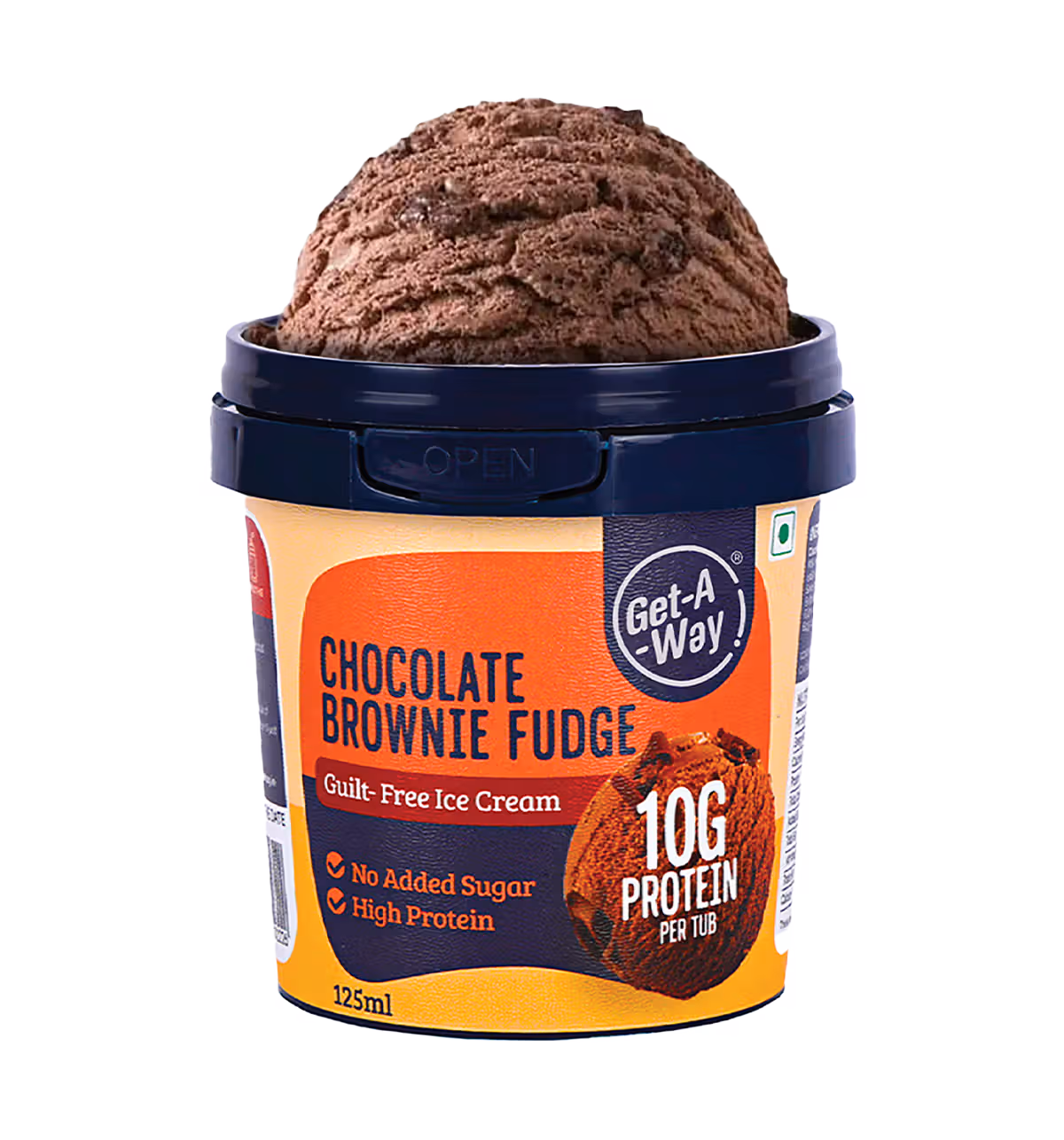 Order Get-A-Way Chocolate Brownie Fudge High Protein Ice Cream Cup (Zero Added Sugar) (100 ml) online at Rs. 100 near me. Get Low Calories Ice Cream .