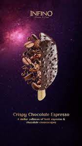 Experience the sophisticated flavors of Infino's Crispy Chocolate Espresso Ice Cream Stick, where rich chocolate ice cream meets a hint of espresso and a crispy chocolate coating. Each bite-sized stick offers a harmonious blend of creamy texture and intense flavors, perfect for indulging your chocolate and coffee cravings simultaneously.