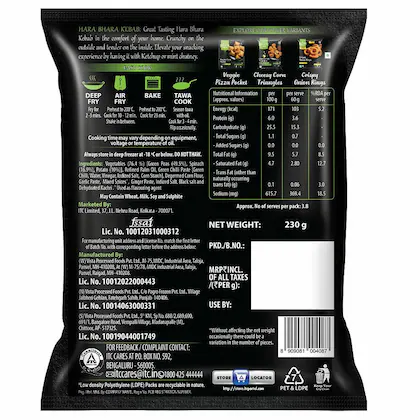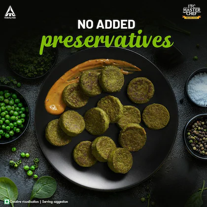 ITC Master Chef Hara Bhara Kebab - a classic kebab with all the humble flavours to give you the perfect bite. It is a great option for people looking for a change in routine snacking. You can shallow fry, or deep fry, or air fry - the choice is completely yours. You can use this in salads or as a filling for pita bread or tortilla wrap, or even just as is, along with some homemade hummus. It is made using the finest quality ingredients