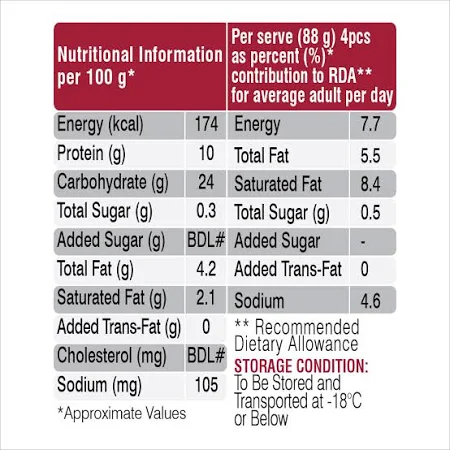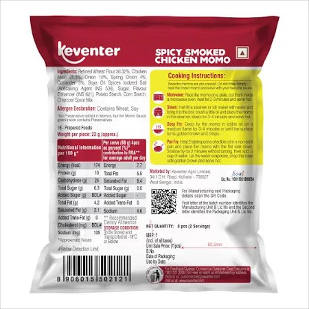 Experience bold flavours with Keventer Spicy Smoked Chicken Momo. Each dumpling is filled with tender smoked chicken, expertly seasoned with aromatic spices for a fiery kick. Steamed to perfection, these momos offer a deliciously smoky twist on a classic favourite. Ideal as a quick snack or party treat, they bring warmth and zest to every bite.