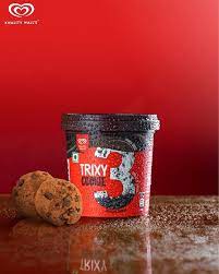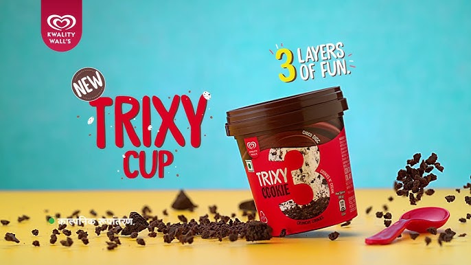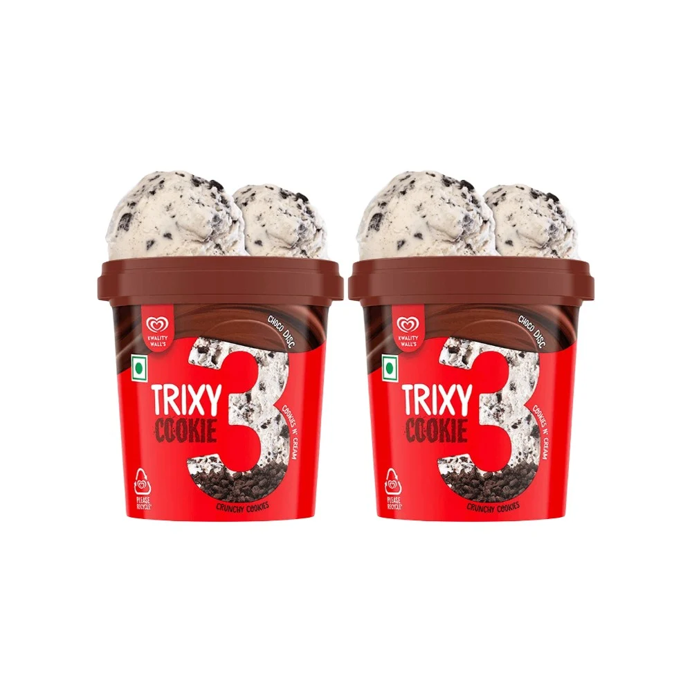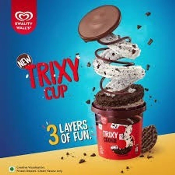 This is a frozen dessert. Introducing Kwality Wall's Trixy Cookie Cup frozen dessert, a delightful combination of creamy indulgence and cookie crunch. This dessert cup features a smooth and creamy vanilla ice cream base swirled with rich chocolate sauce and filled with crunchy cookie crumbles.