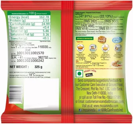 Seasoned with spices and stuffed with potatoes and vegetables, McCain Veggie Nuggets are coated in crispy golden bread crumbs. Easy to prepare, these can be deep-fried and served as snacks or as an accompaniment to meals. Tastes best when serve hot with tomato mayonnaise dip or the much-loved Pudina Chutney.