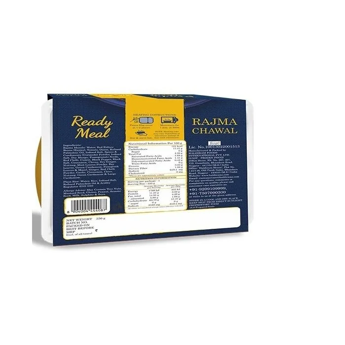 Inclusive of all taxes Makes today's meal special with the most loved Punjabi vegetarian curry, consisting pf red kidney beans in a thick tomato gravy with many whole spices and a side of steamed long grain basmati rice.Sealed fresh with loveMildly spicy & very yummyServes - 1No preservatives Haldiram's Recommendation : Heating time may vary depending on microwave wattage & may need adjustment.