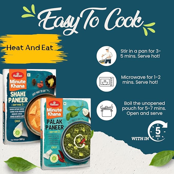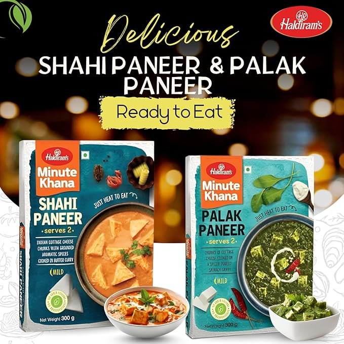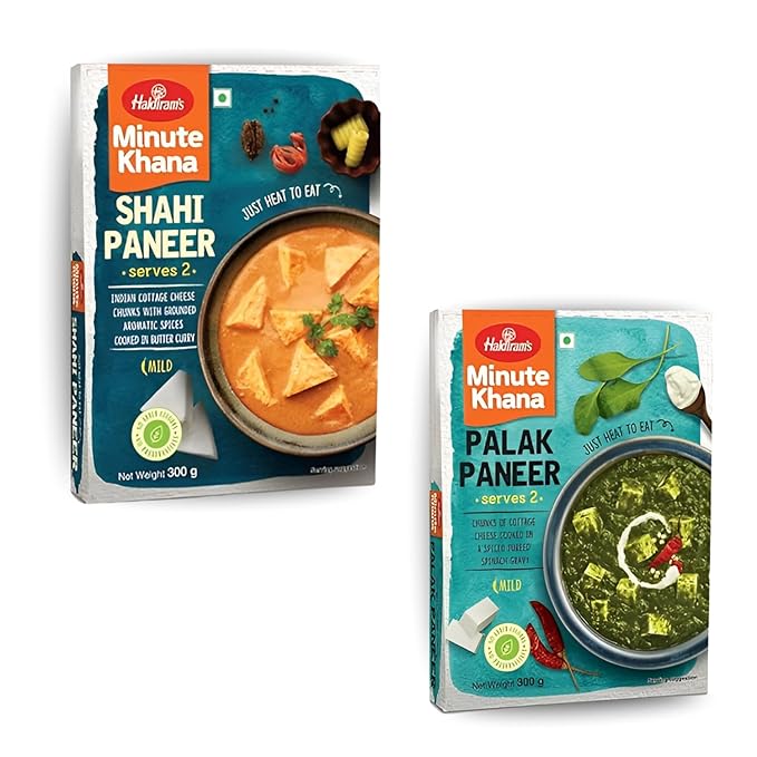 ★【READY-TO-EAT COMBO】: A convenient combo pack featuring 300g of Shahi Paneer and 300g of Palak Paneer, offering two rich and flavorful Indian dishes in one easy-to-prepare meal pack. ★【QUICK & EASY MEAL SOLUTION】: Enjoy the authentic taste of Shahi Paneer and Palak Paneer in just 3-5 minutes, perfect for busy days when you need a delicious and satisfying meal without the hassle of cooking.