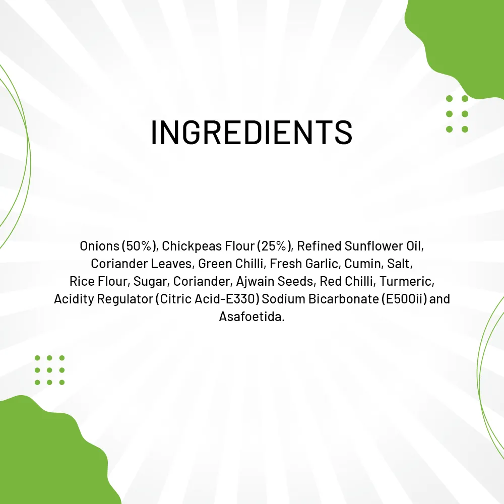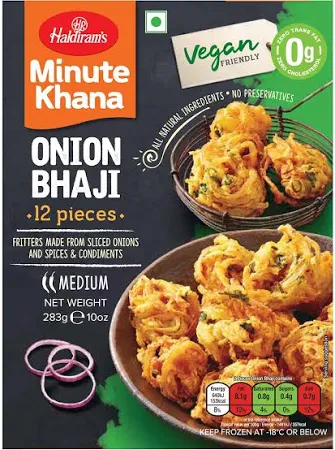 Haldiram's onion bhaji are tasty and delicious. They are sliced onions that are dipped in chickpea flour batter and deep-fried. It is a popular Indian snack that all love. It is crispy, delicious, and flavorful. They are a great snack that is crispy and spicy