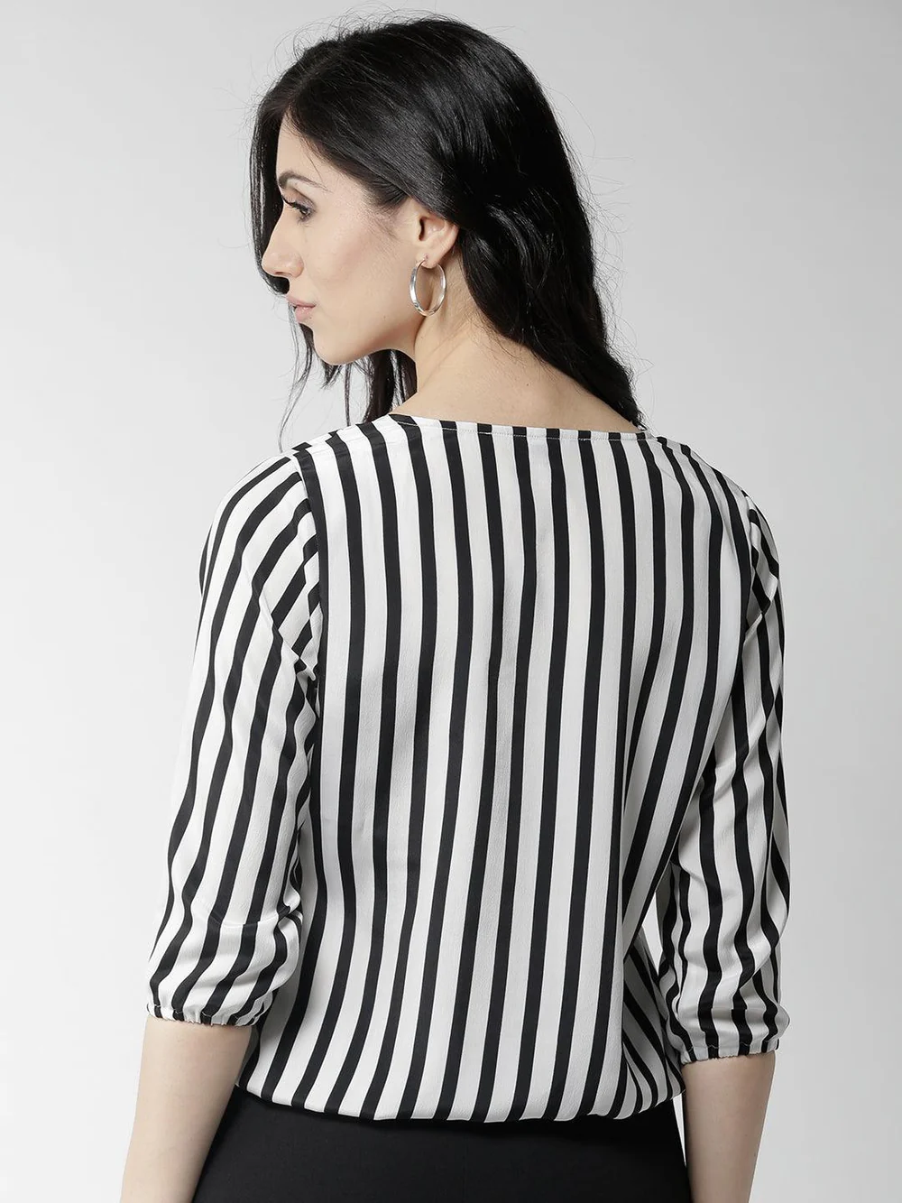 Style Quotient Women Black and White Stripe Polyester Relaxed fit Smart casual top