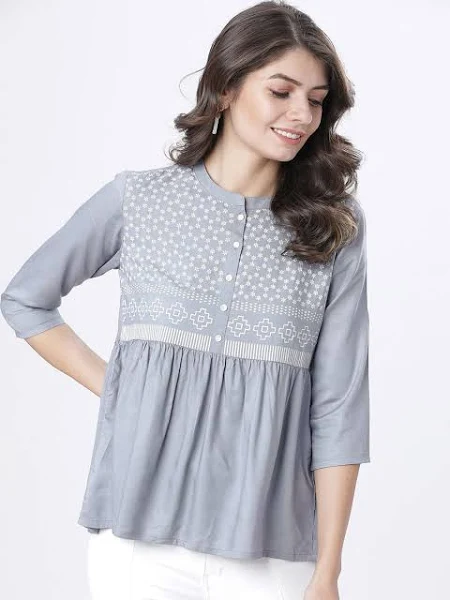 Vishudh Grey Geometric Printed Top by Myntra