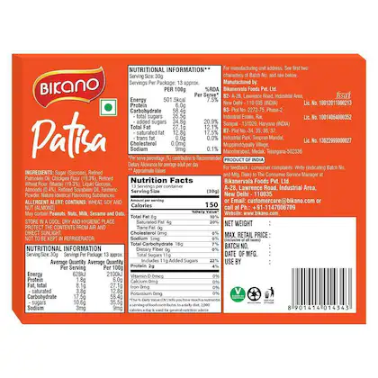 Bikano Premium Patisa Sweet 400 g, It is traditional Indian flaky sweet. Patisa is a delicious cake made from Gram and Wheat flour, garnished with almonds. Tame your sweet cravings with these amazing sweet delight.