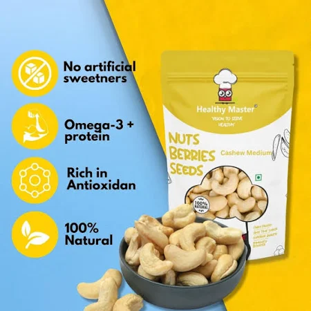 • Cashew nuts are low in sugar and rich in fibre, heart-healthy fats, and plant protein