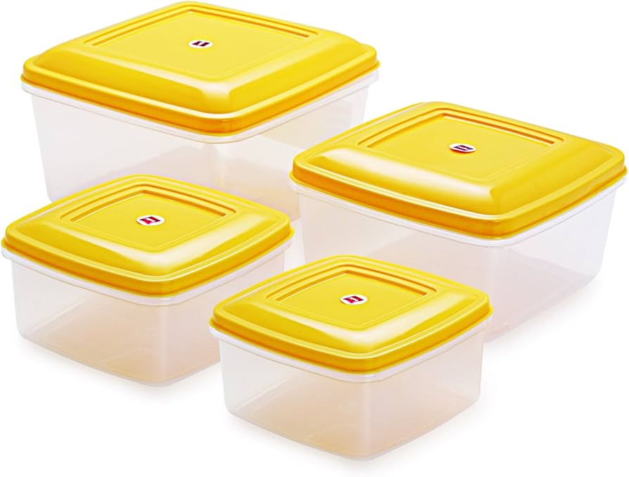 Low-Density Polyethylene & Polypropylene Smart Lid 100% Airtight Lockage Space Efficient Multipurpose Dishwasher Safe Color: Blue, Material: Plastic Package Contents: 1-Piece Handy Saver Container (700ml), 1-Piece Handy Saver Container (1.1 Litres), 1-Piece Handy Saver Container (1.8 Litres) and 1-Piece Handy Saver Container (3 Litres)