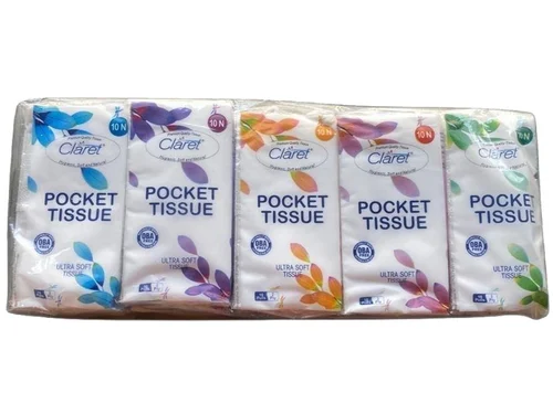 Claret Soft Ultra Pocket Tissue – 2-Ply, Skin-Friendly, 100% Virgin Pulp, 10 Pulls per Pack, 10 Packs per Packet, Convenient and Easy to Carry