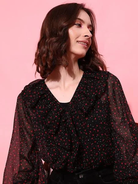 Keep it chic when you step out donning this fashionable top. Designed with a lovely geometric pattern and round neck, this top looks beautiful.