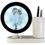 Customized Round LED Magic Mirror Photo Frame with Pen Stand – Personalized LED Light Picture Frame for Desk, Gifts for Couples, Anniversary,