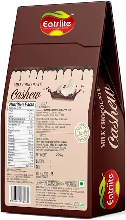 Milk chocolate cashews Produced in a facility that also processes various tree nuts seeds & dry fruits. May contain traces of other nuts, seeds & dry fruits.