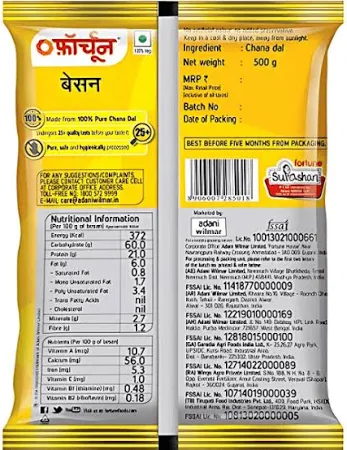 Fortune Besan is hygienic made from 100% chana dal and passes through more than 25 quality checks and processed with advanced grinding technology which retains the flavors and aroma of natural chana dal. Highest grade of chana dal and only standardized colored chana dal passes through our advanced color sortex machine for grinding to give consistency in Fortune Besan leading to the finest taste of any recipe.