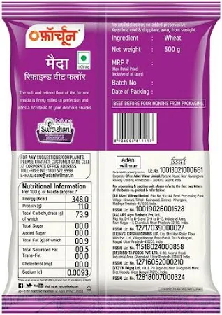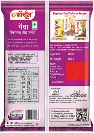Natural taste, flavour and nutrients are intact in FORTUNE maida Made from mp wheat Hygienic and untouched by hands ensuring purity
