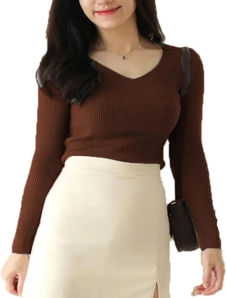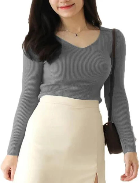 Neck-V Neck, Hem- Knitted Fabric: Lycra Fabric, Occasion- Casual, Daily Wear Tops, Office Wear Top Sleeve: Full Sleeve, Length: Crop Length V Neck Rib Knitted Crop Top For Women Please check size chart given in last Image/Photo. Export finish with interlock stitching. Sizes and shapes are taken with choose perfect measurements and with various experiments.