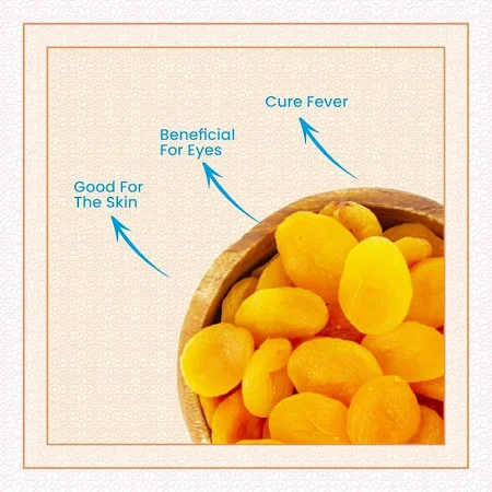 Apricot, (Prunus armeniaca), the stone fruit of the family Rosacea (order Rosales), is closely related to peaches, almonds, plums, and cherries. Apricots are cultivated throughout the temperate regions of the world, especially in the Mediterranean. They are eaten fresh or cooked and are preserved by canning or drying. The fruit is also widely made into jam and is often used to flavor liqueurs. Apricots are a good source of vitamin A and are high in natural sugar content. Dried apricots are an excellent source of iron. Features:- 1. Organic Dry Fruits and Nuts. 2. Perfect Immunity Booster. 3. Fulfil one's daily nutrients, fibre, and antioxidants needs in one place. 4