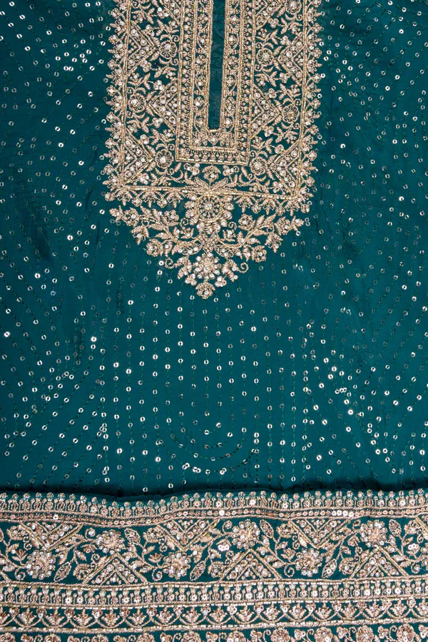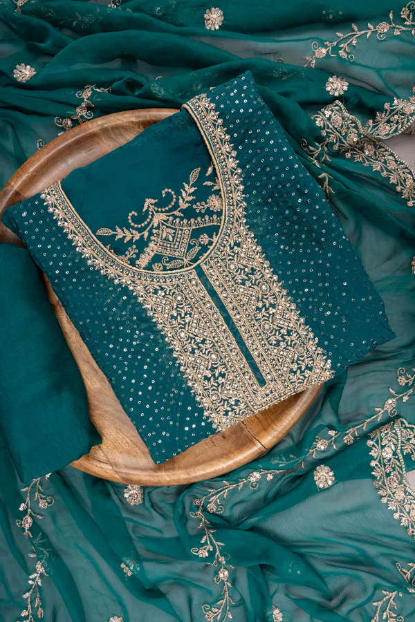 Panna Bottle Green Organza Unstitched Suit With Chiffon Dupatta