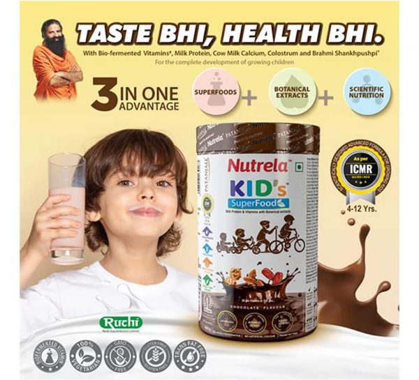 Patanjali Nutrela Kid'S Superfood, Helps Active Growth Of The Children, Chocolate 400g Protein Shake