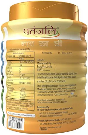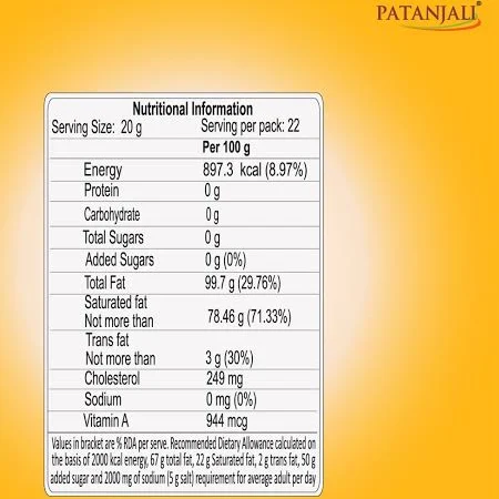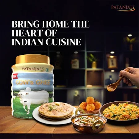 PURE COW GHEE : Patanjali's Cow Ghee is a premium-quality pure desi ghee that boasts a range of nutritive properties. It facilitates nourishment, promotes healing, and serves as a storehouse of energy.