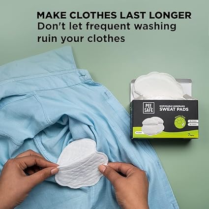 Prolongs the life of your clothing by preventing sweat stains and colour bleeding.;The sweat pads are an adhesive, easy peel off sticking pads that keep you fresh all day long.;Pee Safe underarm sweat pads absorbs sweat and bad odour in the unavoidable excessive warm days.;These are invisible from the outside. The soft texture of the pads is breathable and deodorizing in nature.;Owing to its folded shape, it adheres securely over your clothing and stays in place all day long. It can be used by everyone but are particularly suitable for people suffering from hyperhidrosis.