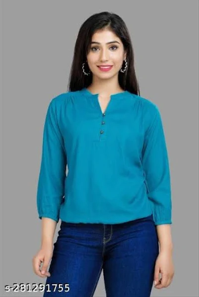 Name : Pretty Solid Top For Ladies Fabric : Rayon Sleeve Length : Three-Quarter Sleeves Pattern : Solid