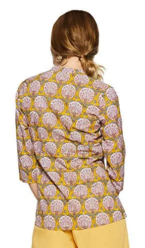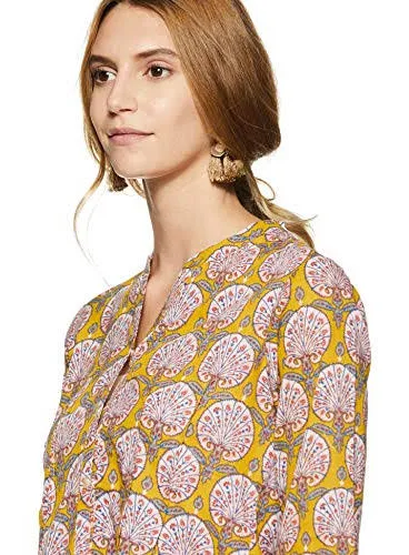 Cruise through the world of fashion by wearing this mustard top from Rangriti. Crafted using premium quality cotton fabric, it will be very soft to the skin. The band neck adds to its appeal. The three-quarter sleeves further speak for itself. The printed pattern makes it a captivating choice. Fit Regular Fit Pattern Print Wash Do not bleach Color Mustard Model fit Model is 5'7"/170 cms and is wearing S Neck/Collar Band Neck Sleeve 3/4th sleeve Fabric Cotton