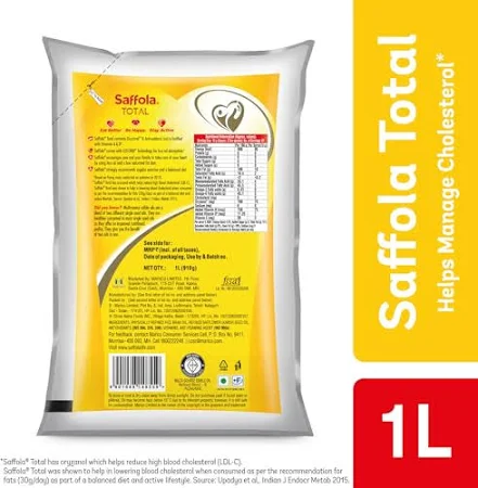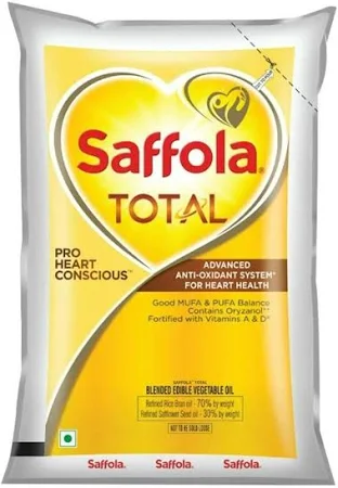 Saffola Total Pro Heart Concious RiceBran Based Blended Oil is perhaps the healthiest choice. Its neutral flavours also won't affect the taste of the food. Choose Saffola Total Pro Heart Concious RiceBran Based Blended Oil which partners on your journey for a healthy lifestyle.