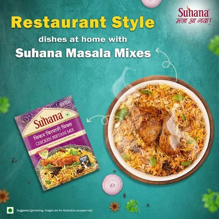Part of the Culinary legacy of the Mughal Empire, biryani is made with fragrant long grain basmati rice, and meant or vegetables marinated in yoghurt and a multitude of spices. Use Suhana Chicken Biryani Mix to create a truly memorable meal!!