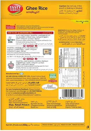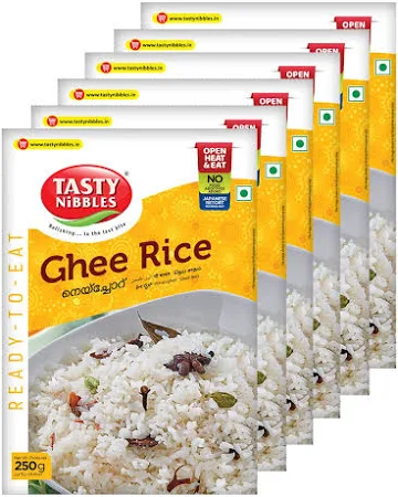 Experience the rich taste of Kerala with Tasty Nibbles' Ghee Rice, a ready-to-eat culinary delight that brings the essence of traditional Kerala dishes to your table without any hassle. This authentic Kerala-style Neychoru is a symphony of aromatic, mildly spiced rice enriched with the luxurious flavour of ghee, embodying the simplicity and richness of Kerala recipes.