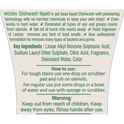 Woosh Pur Lemon Fresh Dishwash Liquid helps in removing the toughest of grease and stains from utensils easily and conveniently. It eradicates the tough grease and grime from the soiled utensils. It removes residual food odour effectively.