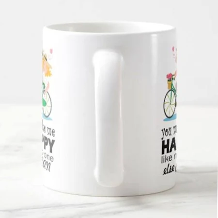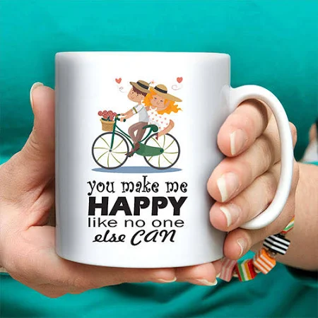 Material: Ceramic » Size: 330 ml » Print reads: You Make Me Happy Like No One Else Can » Color may vary slightly from that shown
