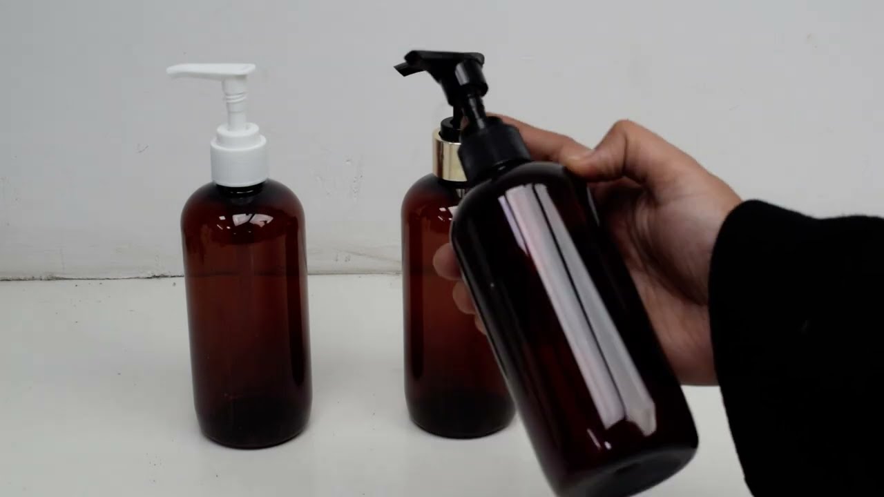 ZMA34 Amber Round Premium Empty Bottle with Golden Black Mist Spray Pump