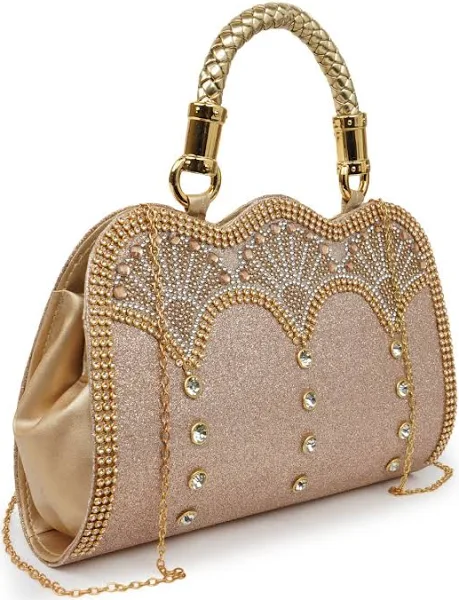 NORVE Women's Elegant Designer Wedding Party Classy Trendy Gold Chain Strap Crossbody Clutch