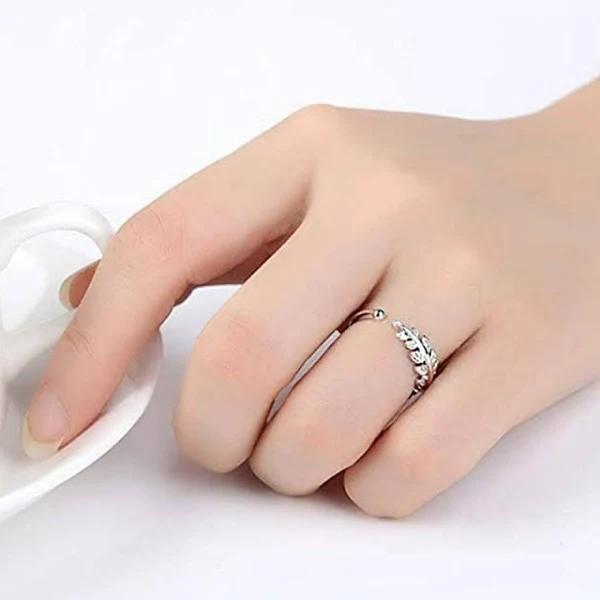 Yellow Chimes Women's Adjustable Silver Leafy Finger Ring