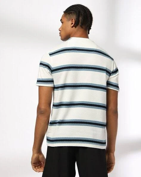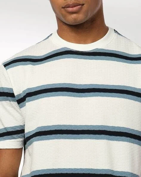 Teamspirit Men's Triple Contrast Striped Boxy Fit Crew-Neck T-Shirt