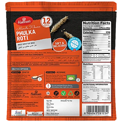 frozen product ; The phulkas are sold frozen and will require reheating before serving