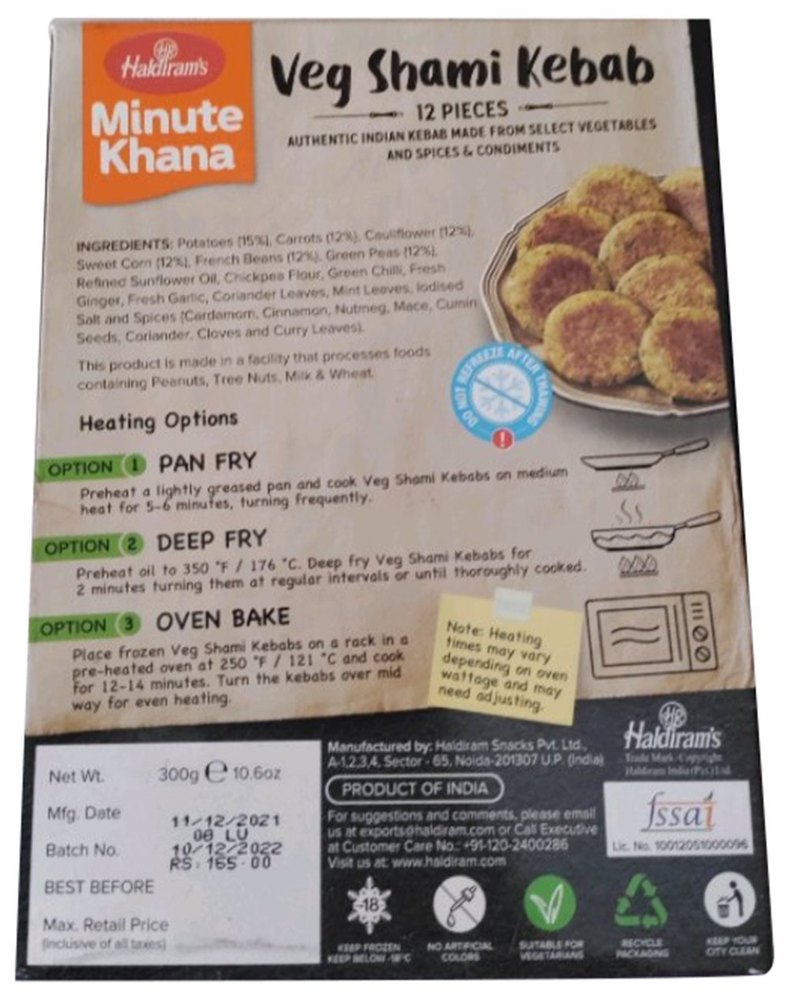 veg shami kabab storage the product should be kept frozen at -18 C or below . once thawed it should not be refrozen nutrition according to , mayuri food 170 kcal
