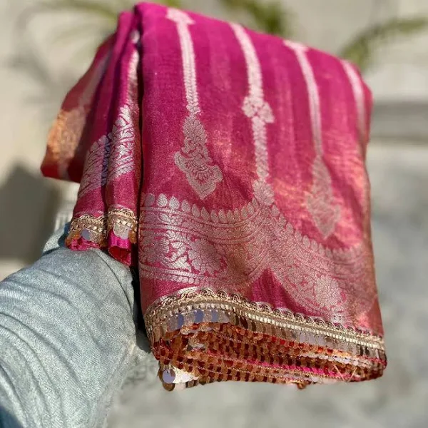 Fabric Details : Saree : Premium tissue crush silk saree with lace work Saree Length : 5.50 Meter Saree Work : Jacquard n Lace Border Work Full saree crush Blouse : Premium tissue crush silk Blouse Length : 0.80 Meter
